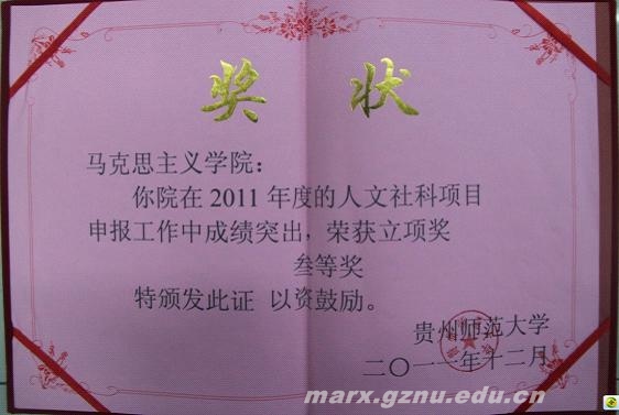 2012年1月6日下午三点,在家的校领导和各部门、学院(教学部)负责人在田家炳书院三楼齐聚一堂,聆听社科处谢廷秋处长对我校2011年各级各类项目的申报、科研评比及取得的成就等分别作了详细的回顾和总结。同时还对本年度科研成绩突出的单位进行了表彰,共评出立项奖及组织奖各四名(一等奖各一名,二等奖各一名,三等奖各两名)。我院在学校领导及相关部门的领导下,在学院领导及教师们的共同努力下,2011年的科研工作获得了实质性的突破。在此次评奖中我院获得了优秀组织奖二等奖和立项奖三等奖(两个一等奖均被历史与政治学院揽入怀中之外)。这表明我院的科研总体水平有了实质性的提高。我们相信:在学校领导、社科处及相关部门的领导和关心下,在我院领导、教师们的共同努力下,我院2012年的科研成果一定会有好的收获!