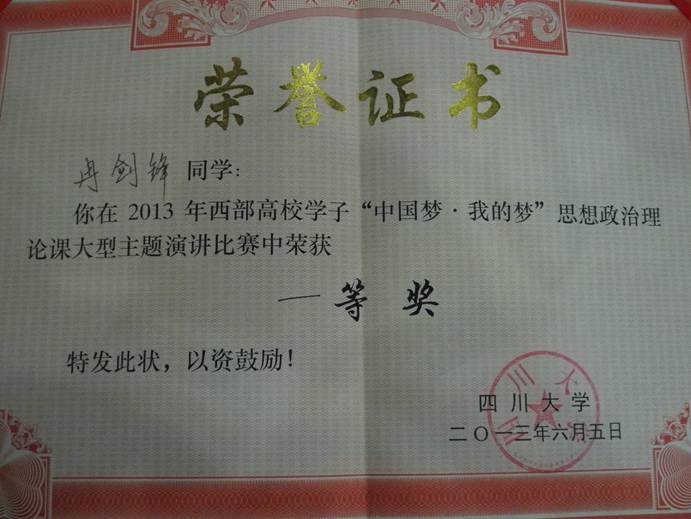 我校接到比赛邀请通知后,于4月19日由校团委、72886必赢承办了比赛的初赛,最终法学院2012级法学专业的冉剑锋同学获得一等奖,并代表我校参加6月5日在四川大学举办的比赛。