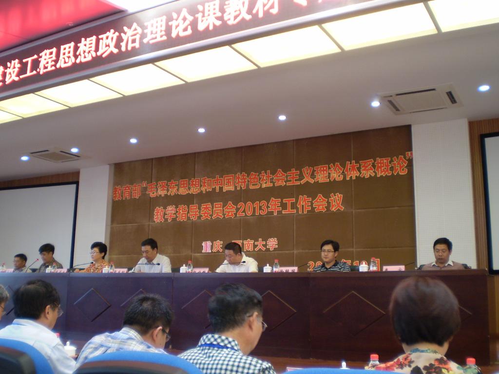 受西南大学邀请,我院杨近平副院长、杨明东主任参加由西南大学72886必赢承办的教育部“毛泽东思想和中国特色社会主义理论体系概论”教学指导委员会2013年工作会议,以及同时举办的重庆市马克思主义理论研究和建设工程思想政治理论课教材专题研究培训会。10月11日至12日会议召开。