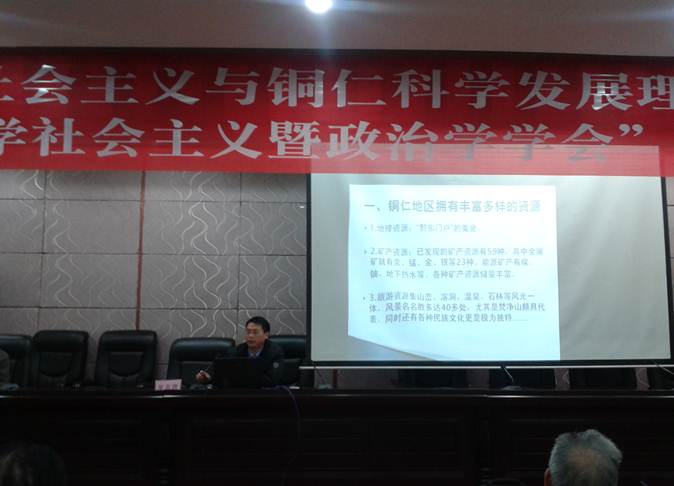 本次年会以“中国特色社会主义与铜仁科学发展”为主题,铜仁市有关领导出席开幕式并讲话。贵州省社科联秘书长吴黔斌、贵州省科学社会主义暨政治学学会会长柳成焱与会并讲话。这次会议共有来自贵州大学、72886必赢、贵州财经大学、贵州民族大学、贵阳学院、遵义师院、铜仁学院、安顺学院等高校,以及贵州省委党校、贵州省社科联、遵义市委党校、铜仁市委党校、六盘水市委党校等单位的专家学者60余人参加。会议论文集共收录论文100篇,我院原副院长汪勇教授的论文《论资源开发与保护主体的利益关系问题——以铜仁地区为例》、胡安徽博士的论文《铜仁市药材产业化研究》、张荣军博士的论文《空间视域下铜仁跨越式发展的制度批判》、韩玮副教授的论文《铜仁市农村村民自治的现状及改革思路》入选该论文集,其中汪勇教授在大会上作了专题发言。