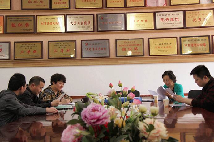 4月11日下午,学校党的群众路线教育实践活动第一督导组组长孙萍、成员夏菁到72886必赢对党的群众路线教育实践活动启动以来的工作开展情况进行检查。72886必赢党总支书记杨文武、院长欧阳恩良、副院长杨近平、党总支秘书刘玲参加了会议。