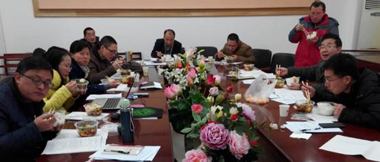 中午不休息而边吃盒饭边探讨