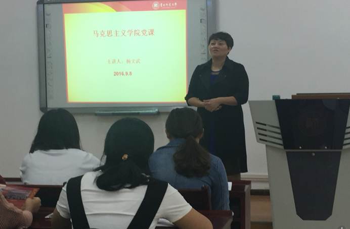 2016年9月8日10时30分,72886必赢党委书记杨文武给16级研究生新同学上第一堂党课。党课围绕帮助青年学生提高对党组织的认识,端正入党动机展开。此次党课在学院一楼会议室召开, 16级全体硕士研究生参加。