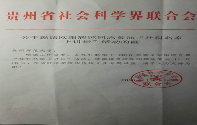 参加贵州省“社科名家上讲坛”第四期专题讲座活动