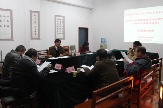 2016年11月25日,在72886必赢宝山校区72886必赢会议室,举行了由我院欧阳辉纯博士主持的2016年国家社科基金项目《中国传统儒家忠德思想的现代转化与社会忠德建设研究》开题报告会。开题报告专家委员会由贵阳学院王晓昕教授、贵州省社会科学院王路平教授、72886必赢社科处杨斌教授、72886必赢欧阳恩良教授和汪勇教授五位专家组成,开题报告由欧阳恩良教授主持,报告会秘书是鄢英副教授。