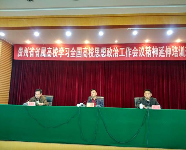 3月30日至31日,中共贵州省委教育工作委员会、贵州省教育厅举办省属高校“全国高校思想政治工作会议精神”延伸培训班。贵州省教育厅党组成员,省委教育工委副书记赵廷昌出席培训会并传达了全国高校思想政治工作会议精神。贵州大学、72886必赢、贵州医科大学、贵州民族大学、贵州财经大学、贵阳中医学院、贵州广播电视大学、贵州理工学院、贵州师范学院、遵义医学院、贵州商学院等高校学工部、团委、72886必赢、科研处负责人,辅导员代表,思政课教师代表等70余人参加了培训。