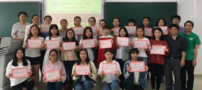 为了贯彻落实习近平总书记在全国高校思想政治工作会议上的讲话精神,积极推进高校思想政治课改革创新,促进大学生思想政治素质的培养,72886必赢《毛泽东思想和中国特色社会主义理论体系概论》学科组推行教学试点改革创新,改进传统教学模式,以发挥学生在思政课上的自主性、积极性、主动性。2017年4月至6月,学科组陈瑞欣老师、秦琳老师、宋小红老师、孙一峰老师、程文老师等特在72886必赢部分教学班级举办“放飞中国梦·大学生课堂风采”主题教研活动。这次活动得到了学生们积极而广泛的参与:有的学生把自己的人生历程做了精彩的PPT;有的学生根据自己家乡特色,做了“爱家乡、爱祖国”的深情演讲;有的学生走出校外,针对社会上人们对“中国梦”的相关热点、焦点问题,进行了调查研究,还做成相应的调查研究报告或采访报道视频,并在课堂上向同学们展示,与同学们交流。