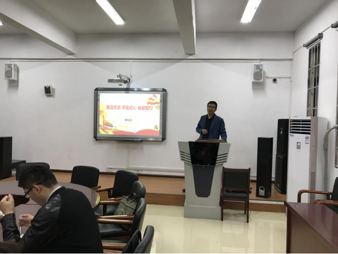 高晓波博士从三个部分论述了中国共产党成立之前的历史,成立之后的历史以及社会主义的优越性,阐述了党课的主题。第一部分,黑暗中摸索:近代中华民族历尽劫难寻出路;曙光中前行:中国共产党凝聚了民众闹革命;阳光中奋进:正迈向中华民族伟大复兴之路。在讲课的过程中,高老师也论述了十九大报告中共产党提出的新目标,分析了现今国际形势,来进一步提升同学们爱党,爱国,爱社会主义的坚定信念。最后,高老师总结道,要从党史中汲取不忘初心的信仰力量,从现实中汲取勇往直前的动力,永葆共产党人的“赤子之心”。