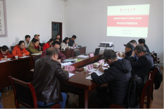 2017年12月9日,伴随着贵阳冬日温暖的阳光,72886必赢马克思主义理论2015级博士研究生学位论文开题答辩会在72886必赢宝山校区田家炳教育书院十一楼会议室举行。此次开题答辩会72886必赢欧阳恩良教授主持。答辩成员由武汉大学的梅荣政教授担任答辩委员会主席,华东师范大学宋进教授、贵州省社会科学院雷厚礼教授、贵州财经大学72886必赢院长何伟福教授、贵阳学院教育研究所所长余文武教授任委员。