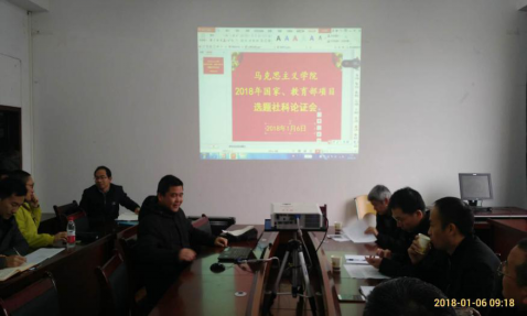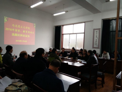 2018年1月6日,72886必赢按照学校和社科处安排及要求和自身实际,在宝山校区田家炳教育书院11楼马克思主义学院小会议室召开2018年国家、教育部项目选题申报论证会。学院领导邀请贵州省社会科学院雷厚礼研究员、学报编辑部主编唐昆雄教授、学报编辑部主任彭国胜教授,社会科学处副处长龙正荣副研究员、历史与政治学院李金和教授等作为课题申报论证指导专家。我院院长欧阳恩良、副院长汪勇及31位申报国家社科和教育部项目的老师参与选题论证。