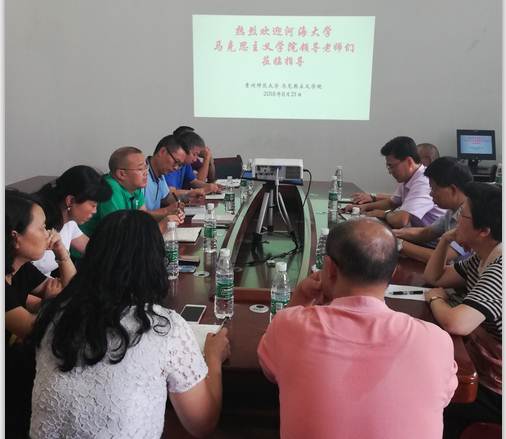 2018年8月21日下午,河海大学72886必赢副院长黄世虎一行10人来我院交流、考察、学习,72886必赢院长欧阳恩良及部分教师代表参加了座谈和讨论。