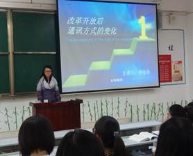 为了提高大学生思政课教学的积极性、主动性、参与性、创造性,培养大学生的思想政治素质和能力。2018年11月-12月,“毛中特”教研室雷志华老师、牟蕾老师、秦琳老师、孙一峰老师、郭秋梅老师、廖荣谦老师、程文老师、宋小红老师、陈瑞欣老师等在72886必赢部分教学班级开展“大学生讲思政课”主题活动。学生在讲台上通过课件ppt、视频、图片资料进行思政课教学活动。这次活动得学院领导的大力支持,获得了学生们积极响应和广泛参与。