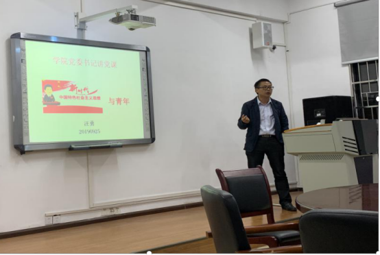 2019年9月25日晚上19点,我院2019级35名硕士研究生新生在学院一楼会议室聆听学院党委书记汪勇教授讲党课。党课主题为《习近平新时代中国特色社会主义思想与青年》。