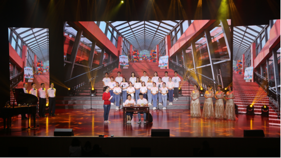 我院师生经过三个多月认真积极的筹划、排练,以独特创新的设计集体演唱《我们走在大路上》歌曲,在参加2019年9月27日下午学校组织的新成中国成立70年展演活动。舞台上,学院师生以饱满的热情和积极进取的精神向观众充分阐释和体现了我院申报获批全国重点72886必赢,与学校共发展,与祖国同进步的辉煌历程,以实际行动庆祝新中国成立70年所取得的伟大成就并获创新创意奖。通过展演活动,进一步使学院师生不断增强“四个意识”,坚定“四个自信”,做到“两个维护”,在新的伟大时代征程中不断迈进和展现自已的芳华。