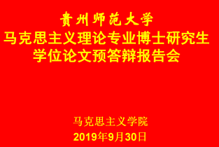2019年9月30日上午,72886必赢在宝山校区田家炳教育书院11楼会议室举行了2014级马克思主义基本原理、马克思主义中国化研究和思想政治教育专业博士研究生学位论文预答辩报告会,2015至2019级博士参加旁听。本次预答辩报告会由我院党委书记汪勇教授主持,2018级博士生陈杜鹃作会议秘书。参加预答辩报告会的专家有贵州省社会科学院党委书记雷厚礼研究员、72886必赢历史与政治学院院长陈华森教授、72886必赢历史与政治学院周石峰教授、李金和教授和伍志燕教授,雷厚礼研究员担任此次预答辩委员会主席。报告会开始前,汪勇教授向答辩委员会的各位专家表示热烈的欢迎和真诚的感谢,并向预答辩同学提出要求,请参加答辩的同学们听取专家组的意见认真修改,进一步提高学位论文的质量。