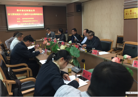 2019年11月5日上午9点,学院党委书记汪勇教授受邀在贵州省社会科学院第二会议室参加由贵州省社会科学院主办,贵州省中国特色社会主义理论研究会和甲秀智库与评价中心承办的“贵州省理论界学习贯彻党的十九届四中全会精神座谈会”。座谈会由贵州省社会科学院院长吴大华教授主持,参会人员有贵州省人民政府发展研究中心、贵州省社会科学院、贵州大学、贵州民族大学、贵州师范学院等单位相关领导干部和专家近40人。汪勇在会上围绕“论推进国家治理体系和治理能力现代化的多重意义”主题作了交流发言,其他16位与会专家也分别作了交流发言。这次座谈会对推动贵州省社会科学理论界学习和宣传、贯彻落实党的十九届四中全会精神起到了积极促进作用。同时,该座谈会也践行了主题教育关于及时学和跟进学的相关要求,有利于进一步增强“四个意识”,坚定“四个自信”,做到“两个维护”。