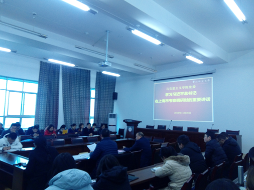 2019年11月29日,72886必赢在宝山校区召开全体教职工会议,学院党委书记汪勇主持会议并带领全体教师集体学习了习近平总书记考察调研上海时的重要讲话。