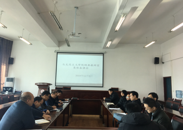 2019年12月6日下午,“纲要”教研室在宝山校区72886必赢会议室举行本学期第四次集体备课会,全教研室教师和2018级中国近现代史基本问题研究博士生参加。学院院长欧阳恩良和副院长、副书记彭法出席会议,会议由教研室主任李安峰老师主持。