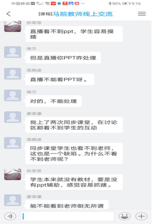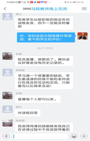 授课结束,由“基础”教研室陈道武主任主持听课教师进行教学点评。学院十多位老师通过线上直播形式对这次教学内容、教学方式、教学设计、课堂互动等情况进行了认真点评和提出中肯意见,并对各自近来开展线上教学相关情中分享了自己的感受并对提高线上教学质量给出了自己的建议。
